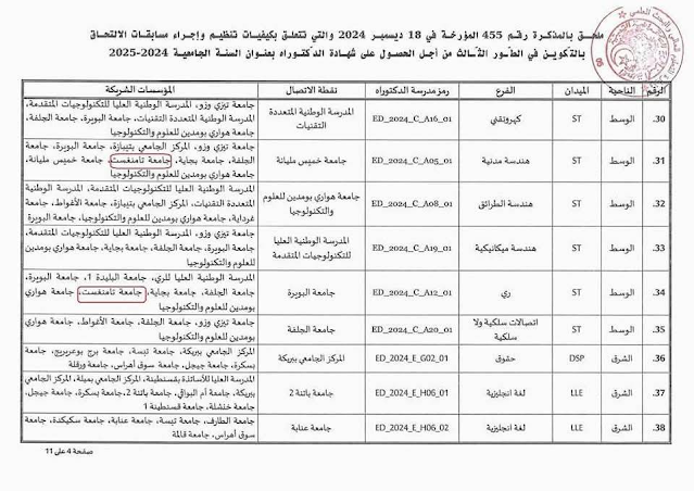رزنامة تنظيم مسابقة الالتحاق بالتكوين في الطور الثالث للسنة الجامعية 2024-2025